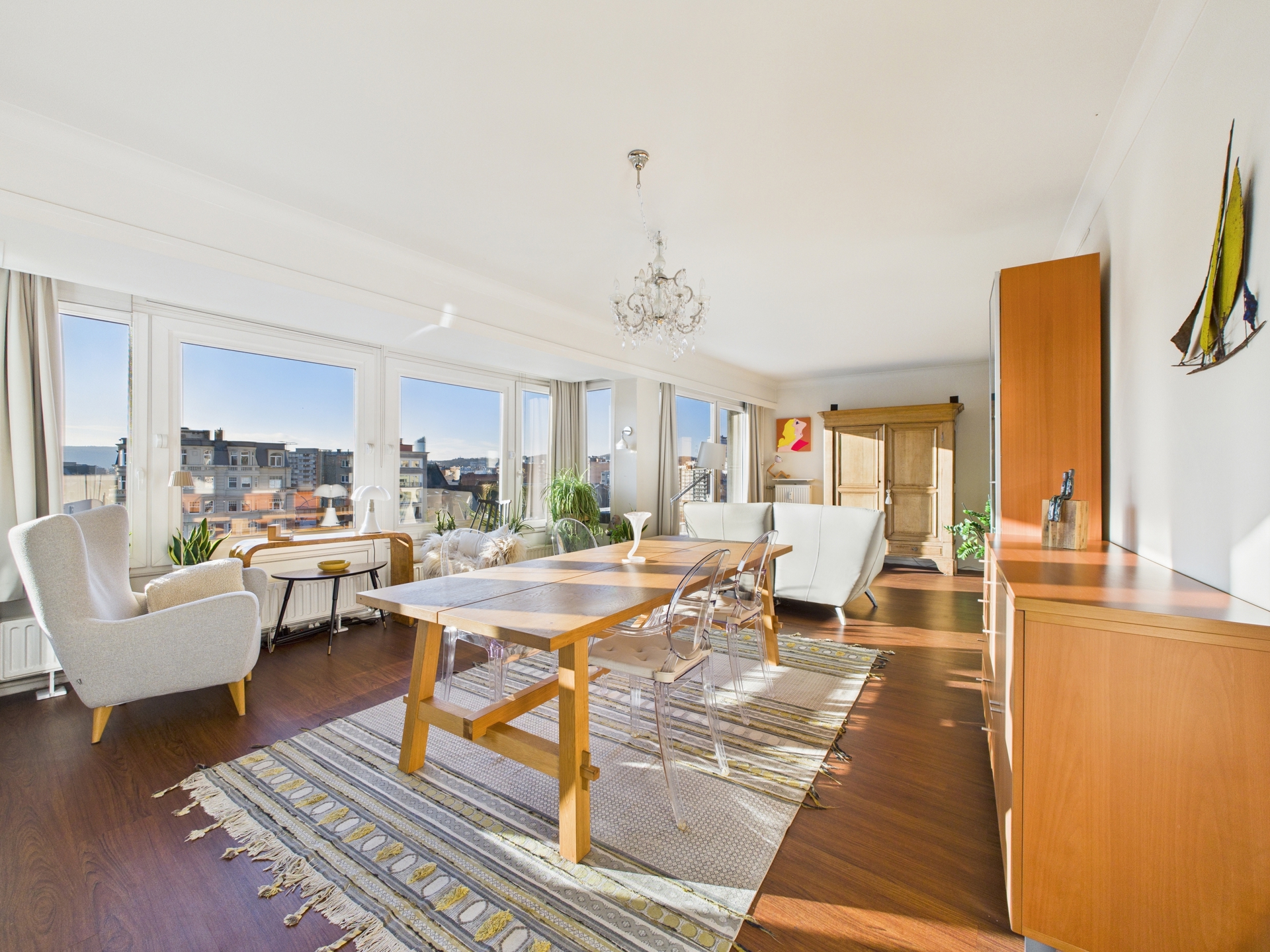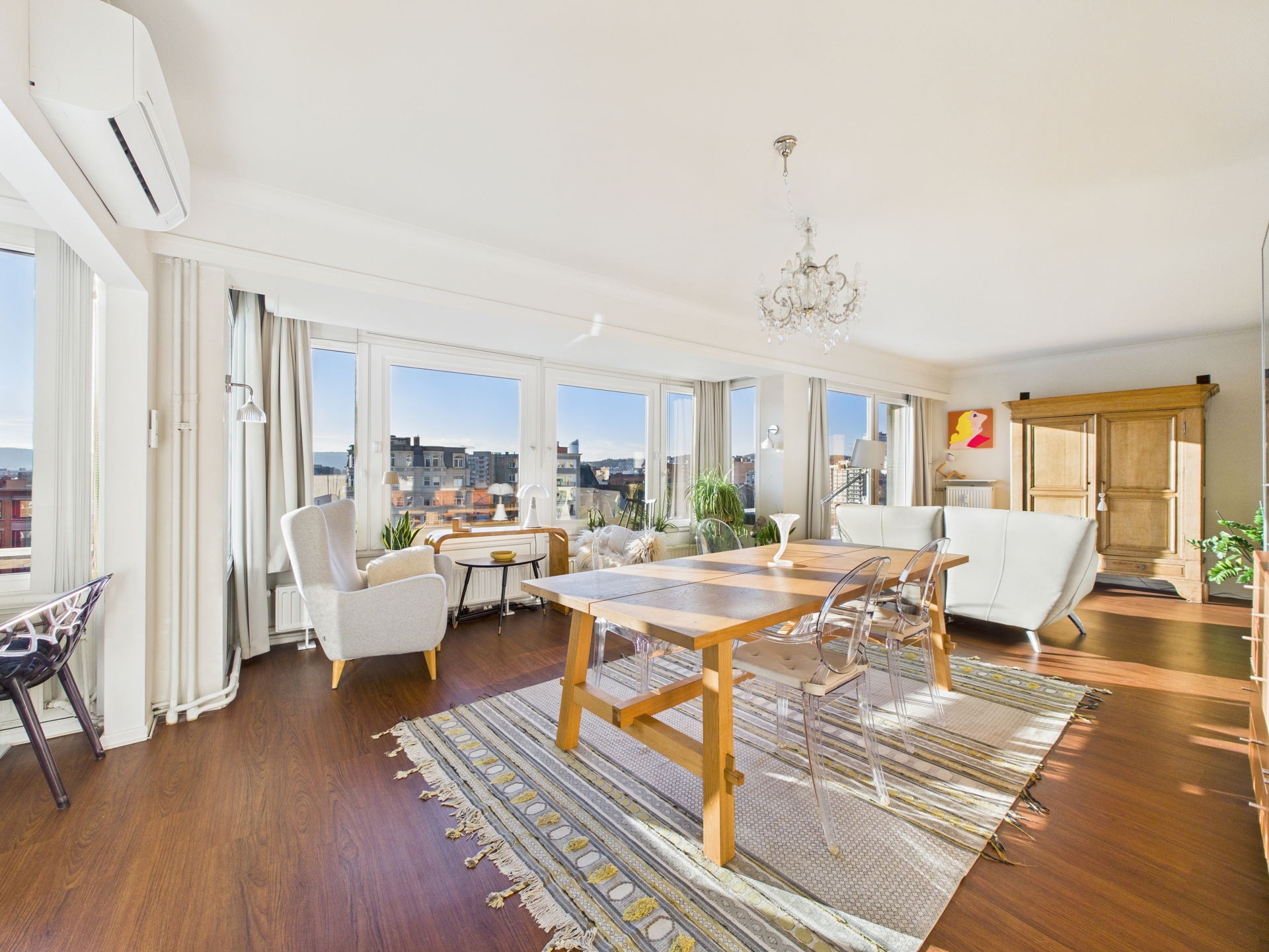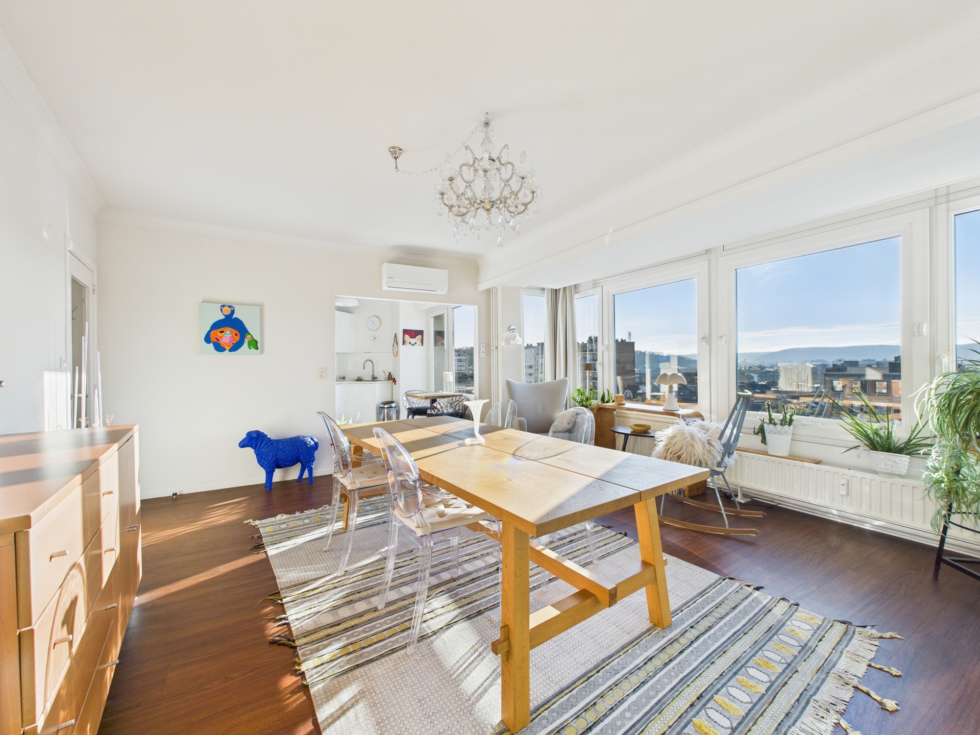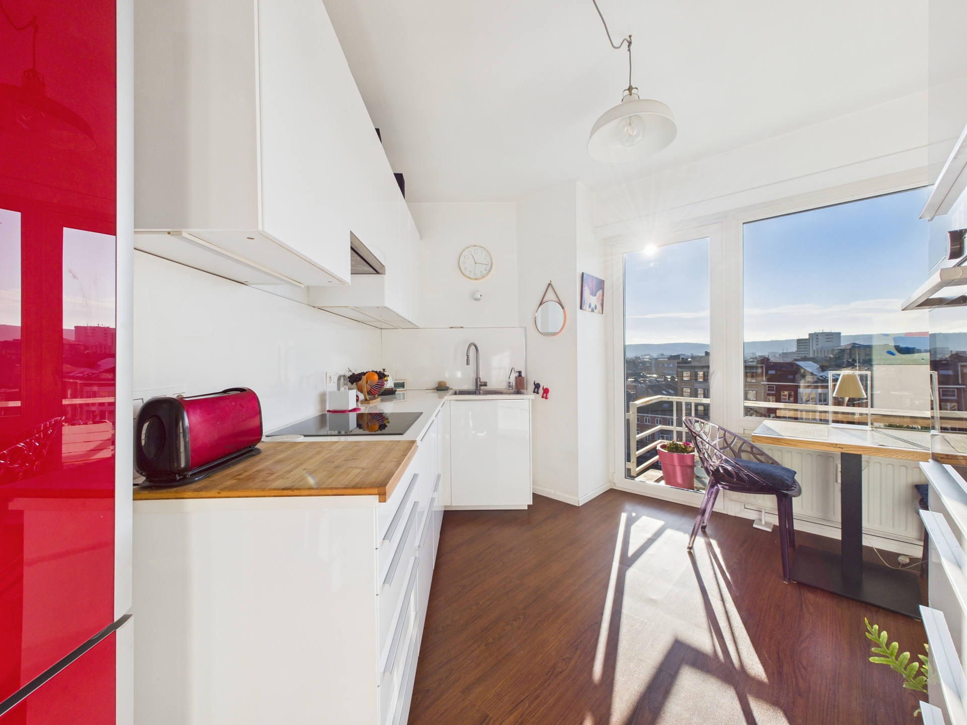 Situé au 7ᵉ étage d’un immeuble, cet agréable appartement rénové offre une vue dégagée et un cadre de vie lumineux au cœur de Liège, sur le très recherché quai de l’Ourthe. Dès l’entrée, vous serez séduit par les volumes et la clarté des pièces de vie. Le séjour, spacieux et convivial, s’ouvre sur une cuisine semi-équipée, idéale pour les moments du quotidien comme pour recevoir. L’ensemble bénéficie d’une belle luminosité naturelle grâce aux larges baies vitrées donnant accès à deux balcons, parfaits pour profiter de l’extérieur et de la vue sur les environs.
