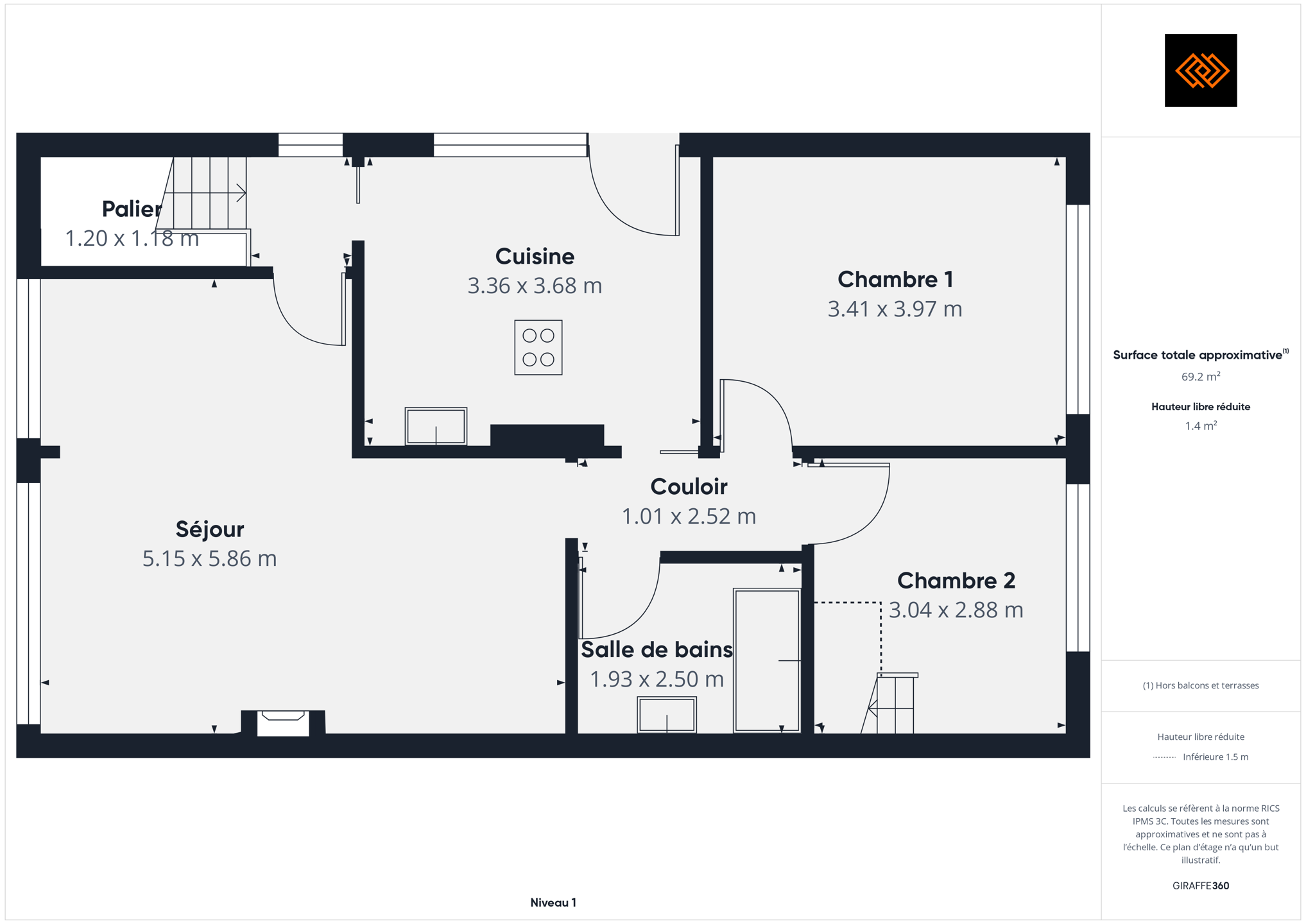 - Surface de la chambre 1 14 m²