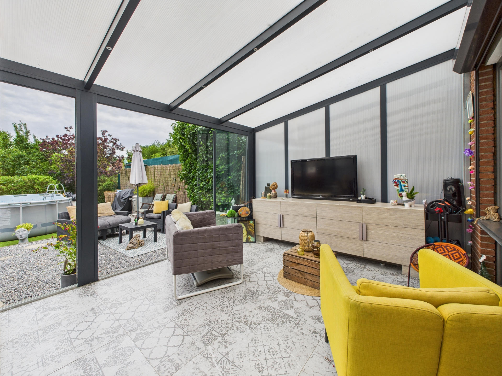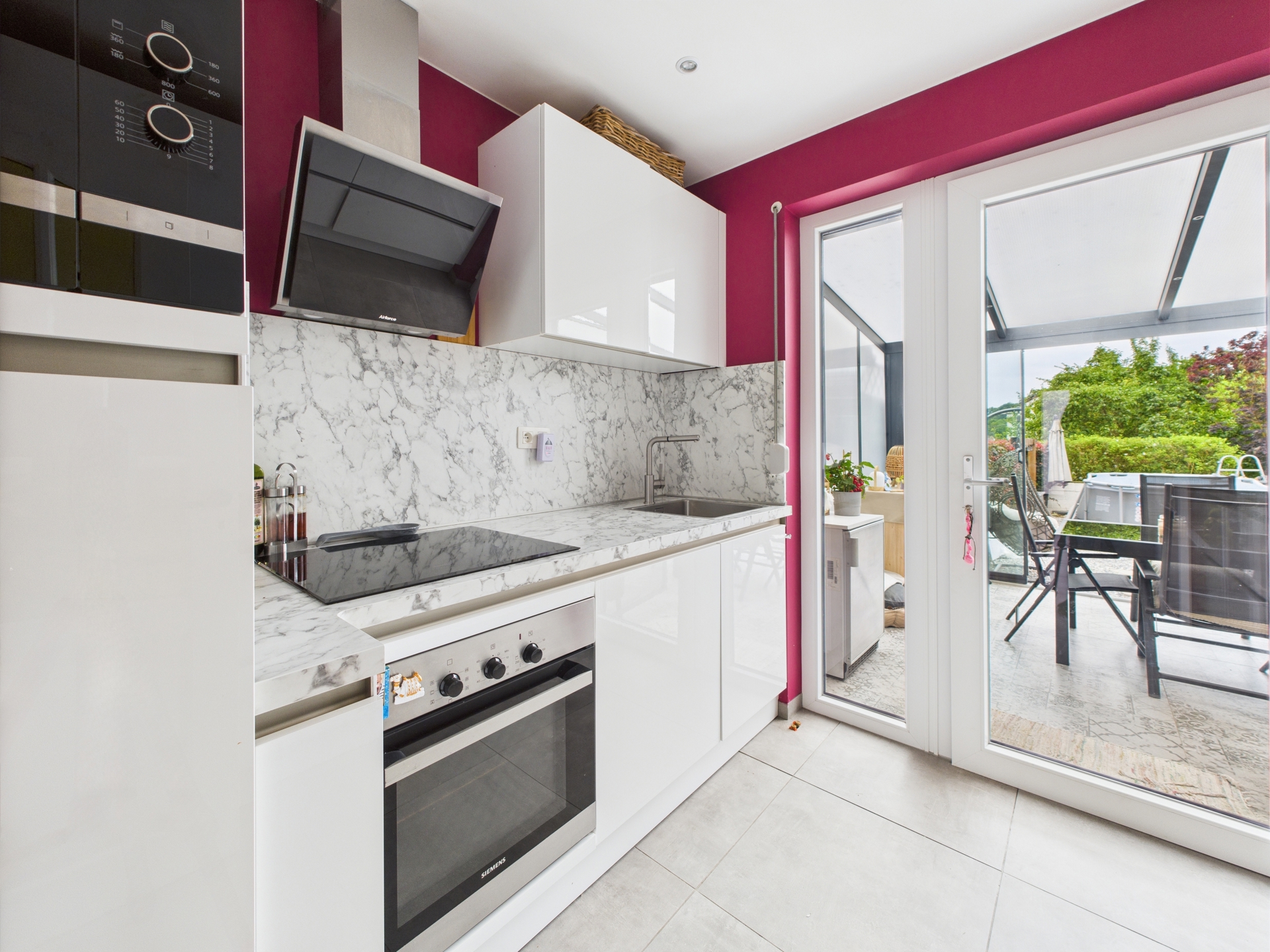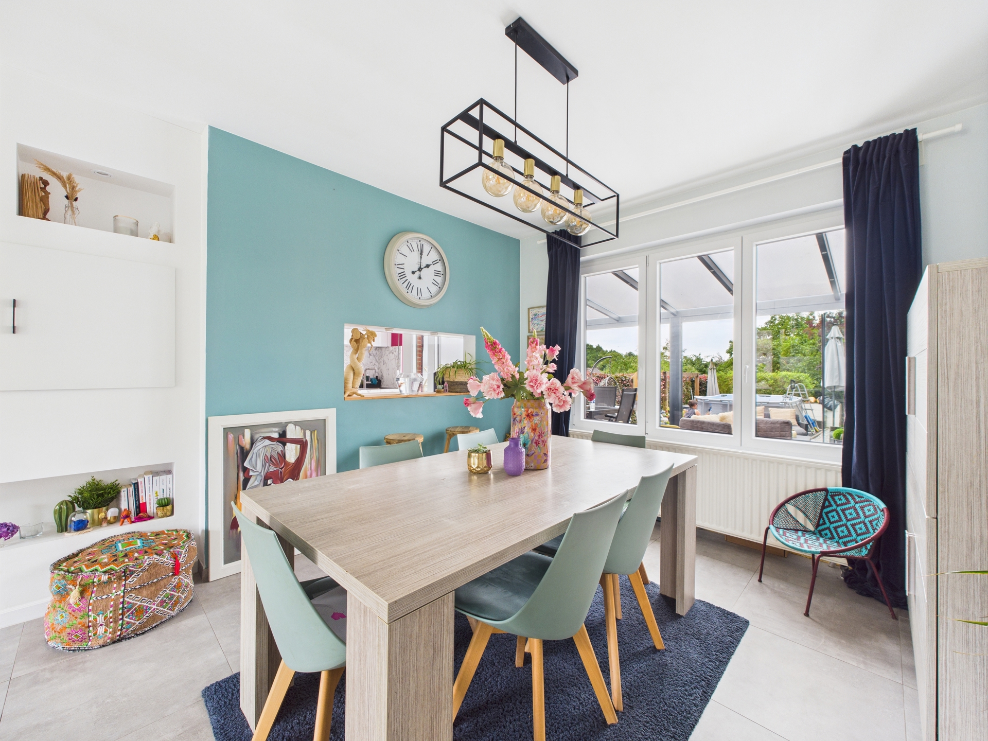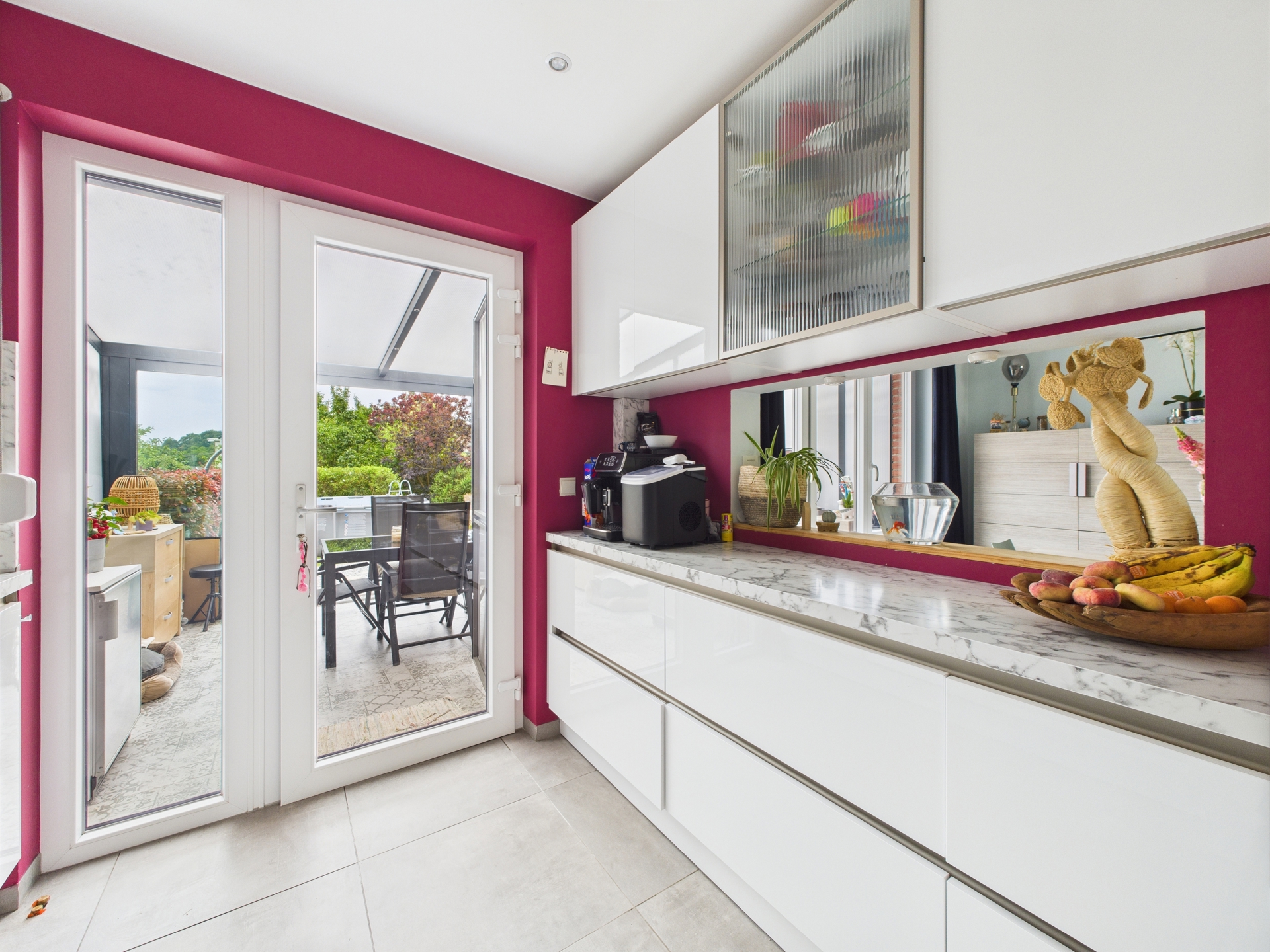 La cuisine équipée, moderne et bien agencée, s’ouvre sur une véranda lumineuse avec air conditionné, parfaite pour profiter de l’extérieur toute l’année. Le jardin, bien entretenu, constitue un véritable espace de détente.