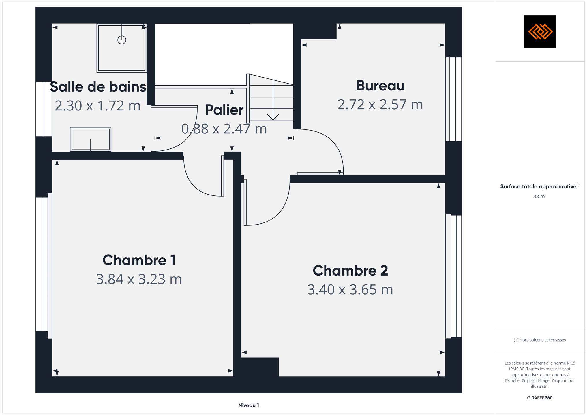 - Surface de la chambre 1 12 m²