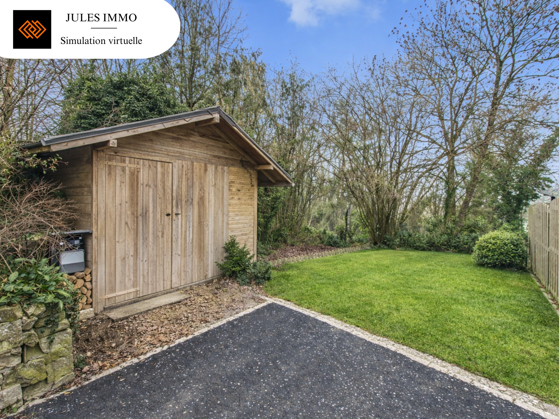 À l’extérieur, le bien dispose d’un petit jardin situé au fond d’une rue en cul-de-sac, offrant un véritable havre de tranquillité. Un abri de jardin complète cet espace, pratique pour le stockage. Des panneaux solaires viennent renforcer l’attrait de la maison en apportant un atout énergétique supplémentaire.