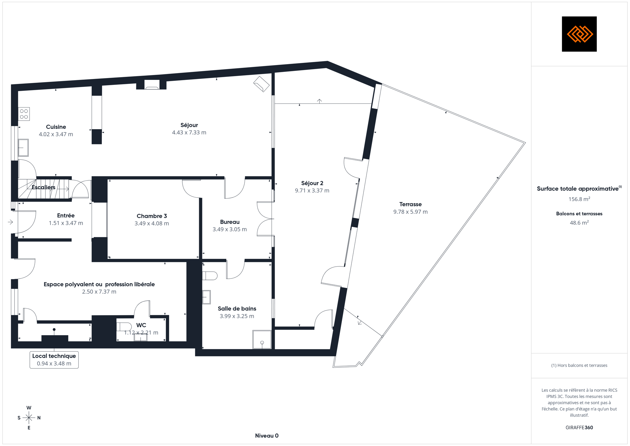 - Surface de la salle de séjour 65 m²