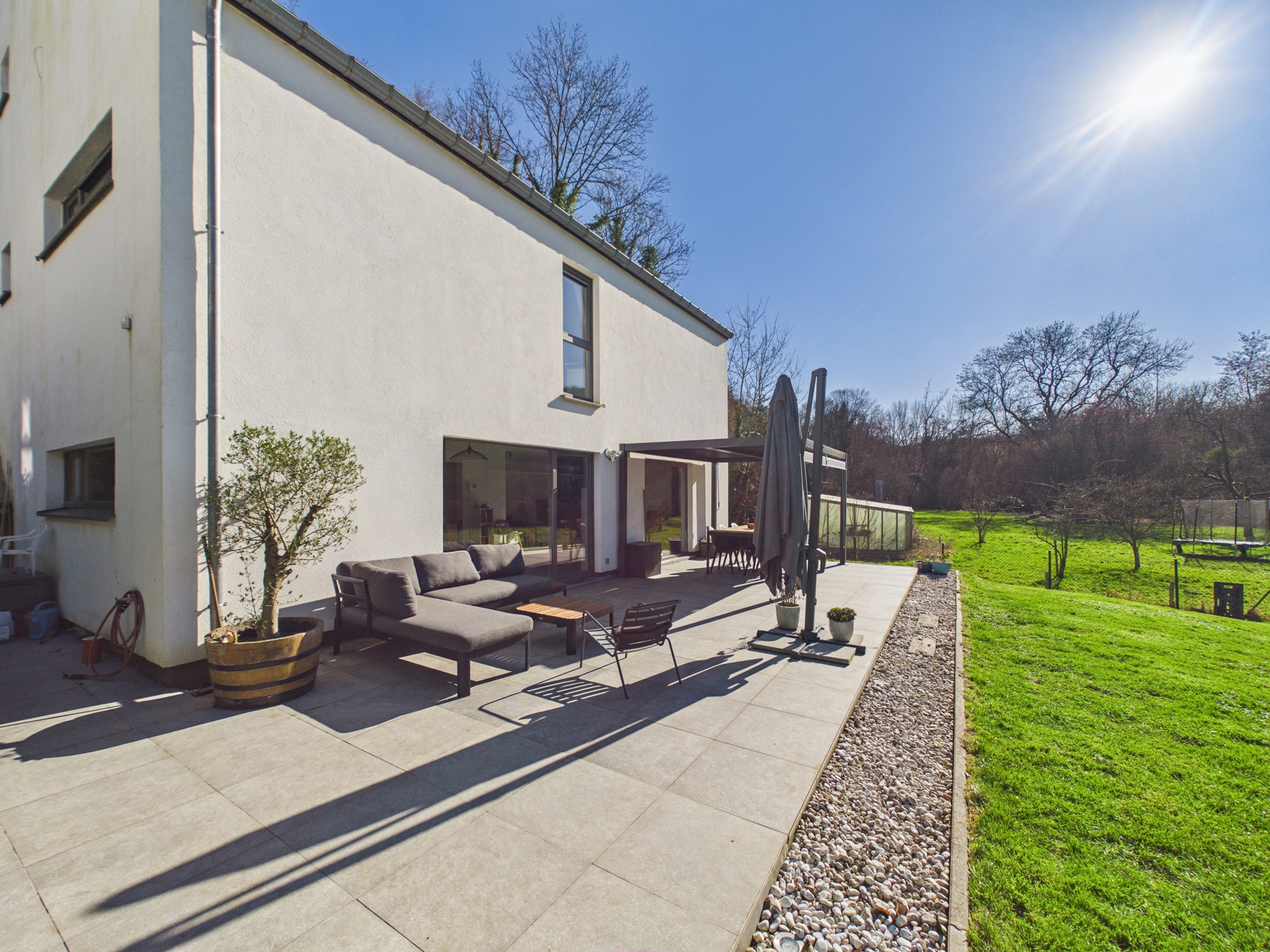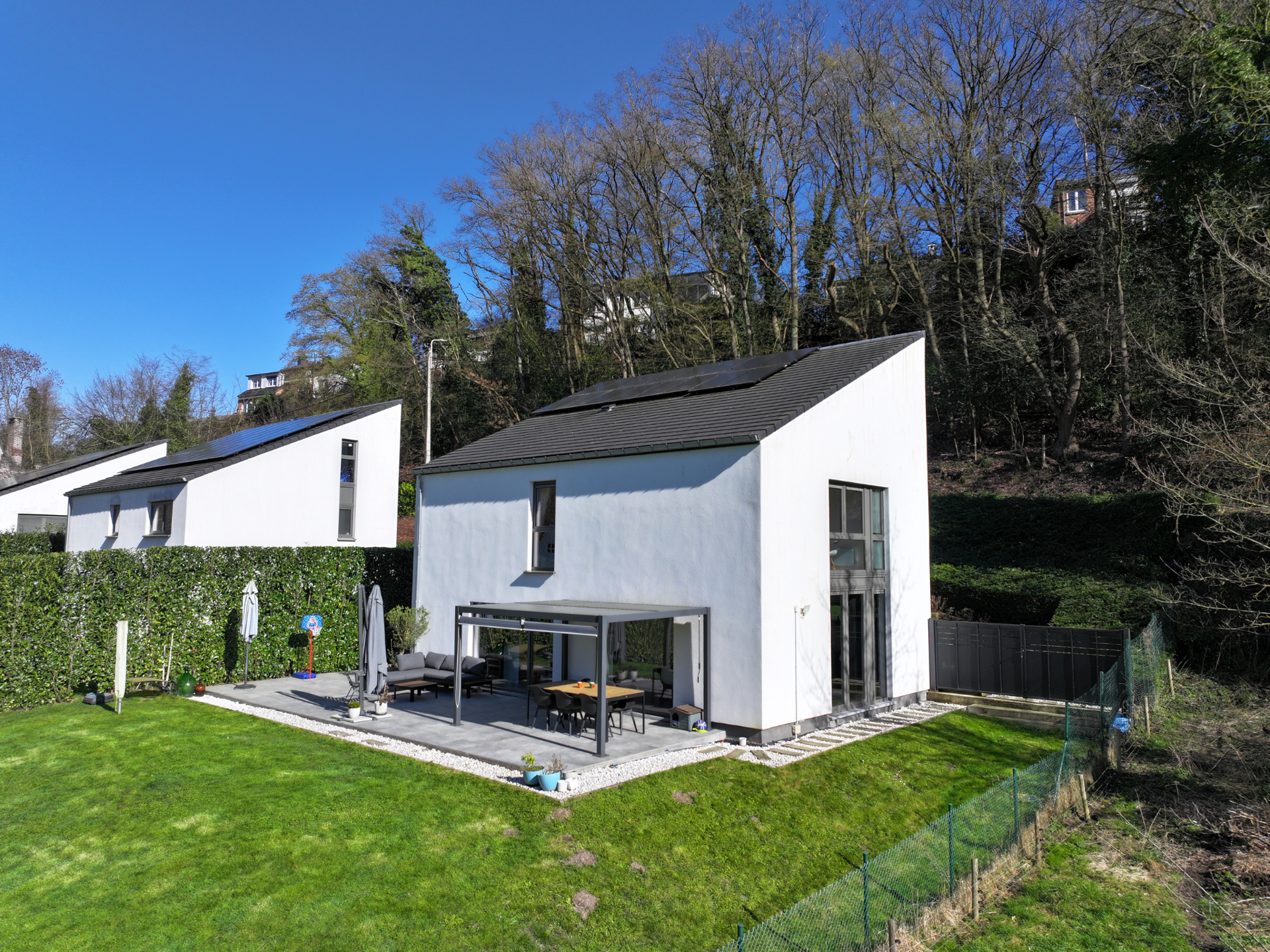 Superbe villa à Embourg Située dans une rue calme sans issue à Embourg, cette maison moderne construite en 2017 bénéficie d’un environnement verdoyant tout en restant proche des commodités, de l’autoroute et à seulement deux minutes du centre d’Embourg. Vous serez séduit par le spacieux espace de vie d’environ 50 m² comprenant séjour et cuisine ouverte contemporaine avec îlot central. Les grandes baies vitrées offrent une belle luminosité et un accès direct à la terrasse et au jardin. Les pièces de vie bénéficient d’un chauffage par le sol. La maison propose 4 chambres, 2 salles de douche et 3 WC. Les chambres et salles de bain disposent d’un chauffage électrique indépendant par convecteurs. Une buanderie complète les espaces intérieurs. À l’extérieur, vous profiterez d’une terrasse d’environ 70 m² et d’un jardin d’environ 490 m² bordé par la nature, ainsi que de deux emplacements de parking. Côté technique : chaudière à condensation air/eau, VMC, châssis PVC double vitrage, électricité conforme, 16 panneaux photovoltaïques (production théorique ± 5000 kWh/an), adoucisseur d’eau Minimax et sanitaires raccordés à la citerne d’eau de pluie. Le prix ne constitue pas le seul critère qui sera pris en compte pour l'acceptation de l'offre. PEB : B - 88 kWh/m²/an - Code unique : 20190311502532 Pour plus d'informations sur ce bien et pour planifier une visite, veuillez contacter JULES IMMO à l'adresse visite@julesimmo.be et/ou au 04/240.08.75.